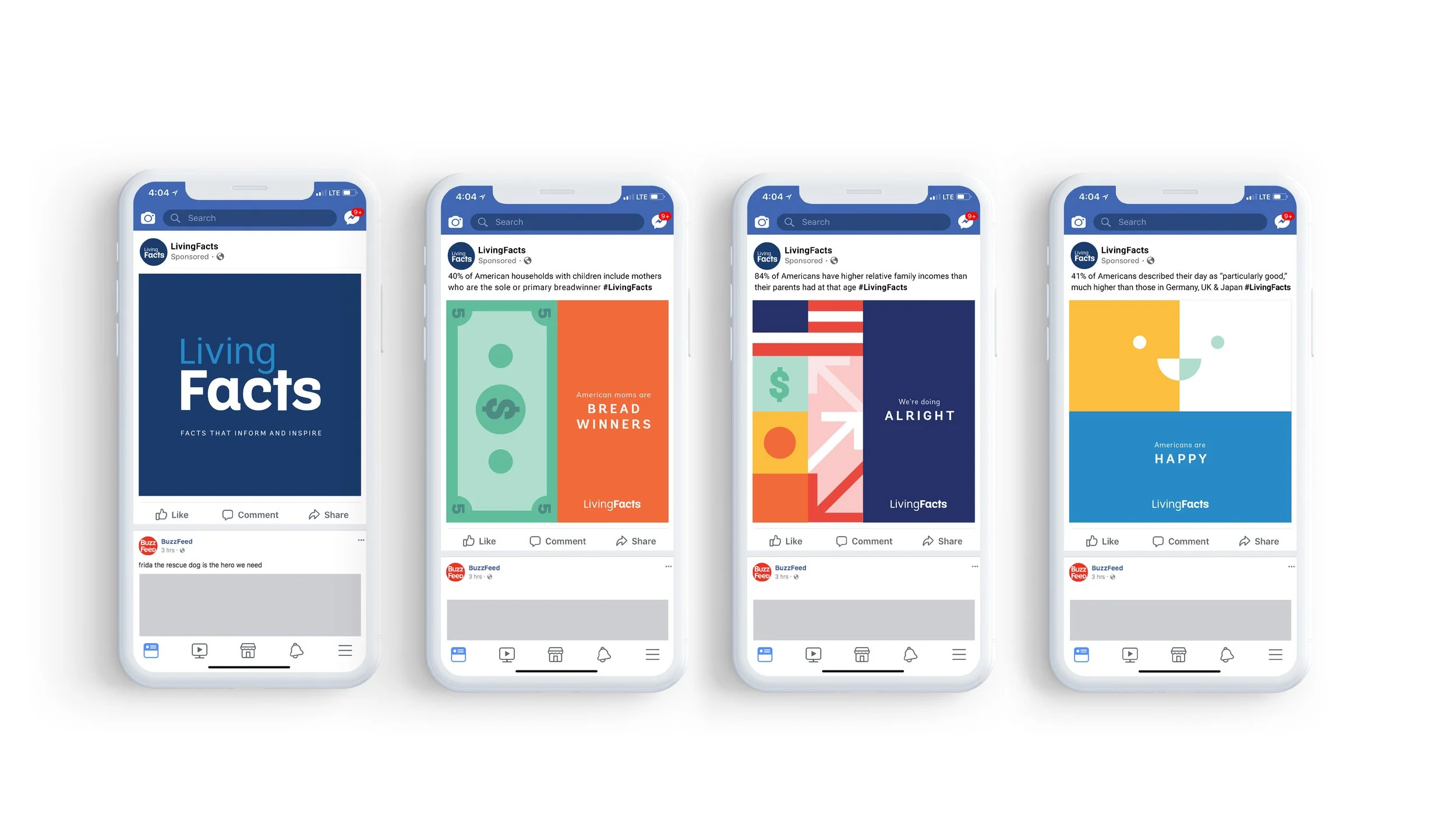 Pew is committed to using evidence-based, nonpartisan analysis to inform the public. But with misinformation everywhere, they needed to position themselves as a trusted partner and resource for the millennial and conservative audiences. We launched Living Facts, an integrated campaign, focused on facts about Americans - who we are and how we live, successfully establishing Pew as a credible source.